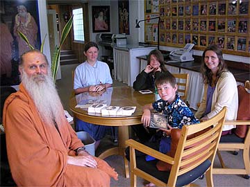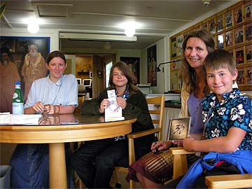 After a wonderful Abhishekam in the Kadavul Temple, Heidi Tordrup and her lovely children met with Paramacharya Ceyonswami. He answered their many questions about God Siva, karma, reincarnation, gems and Vedic Astrology. Sadhaka Haranandinatha also presented them with a map of the Ganesha Temple in Herning, Denmark which is just a few kilometers away from where they live! Their experience here has endeared them to Saivism, but they had no idea that there was a Hindu Ganesha Temple so close to home replete with a Saivite Tamil community. This is one happy family! Gurudeva visited the Ganesha Temple in Herning, Denmark in 2001!