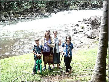 Here are the Tordrup family on the banks of the very sacred Wailua River.