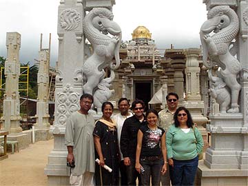 At the Iraivan temple complex in front of the Tara pillars are our wonderful visitors from Japan and the Hindu family who pilgrimaged to Kauai is to the right of them.