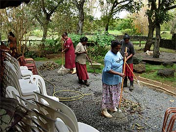 leaves everywhere. As usual a large crowd of devotees poured into the Spiritual