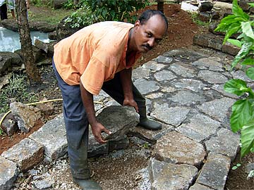 Siven, our main gardener is also good a brick laying. He is constructing a stone