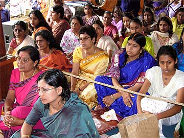 The early comers are happy to be seated so close to Lord Pancha Mukha Ganapati.
