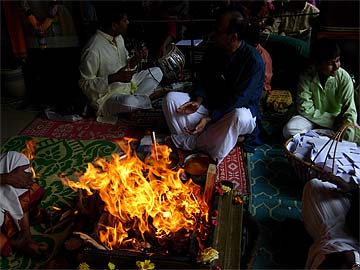 Hundreds of written prayers dipped in ghee are burnt into the homa. The devas