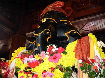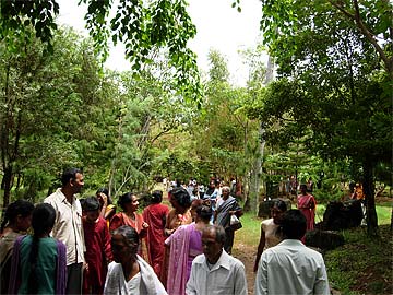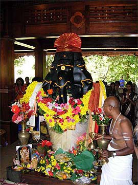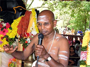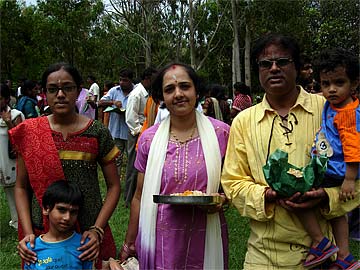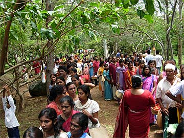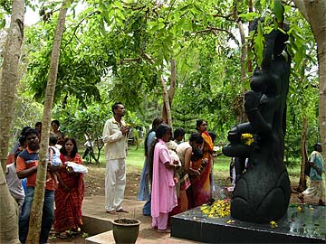 Devotees on their way to he food stations stop at the Siva Dakshina murthi to worship Lord Siva.