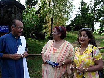 Kulapati Manon Mardemootoo talking to some visitors from Holland.