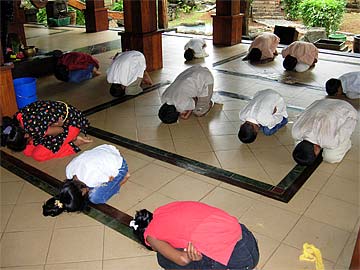 Our youth are there for their Saivite Hindu Religion classes. There is a short break in between sessions. Here are a few who are around for a photo near the pond. They have just had a lesson on Yama 1, Ahimsa. They played a nice game where they were presented with several currents situations drawn from their home and school life and had to react in the light of Yama 1. They were then given an assignment to practice at home from Merging With Siva, where Gurudeva said: