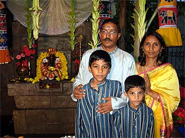 Uday and Gita Sagi with their two children, Rahul age 9 and Ajay age 2 +, and Sri Devi Penmatcha, Gita's mother. All originally from Hyderabad, India and now living in Dallas, Texas.