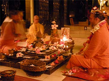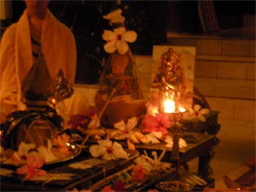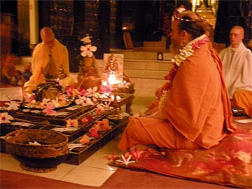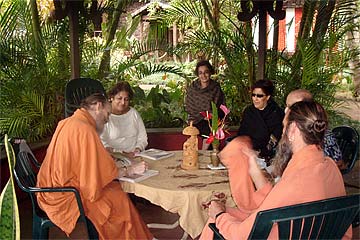 Sun One and it was also tour day. Bodhinatha signs copies of "What Is Hinduism" for guests.