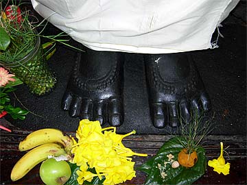 While works are going on devotees are coming everyday to worship at the Holy Feet of Lord Ganapati