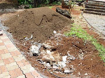 New concrete blocks to be placed on both sides of the main path leading to the Mandapam from the main entrance.