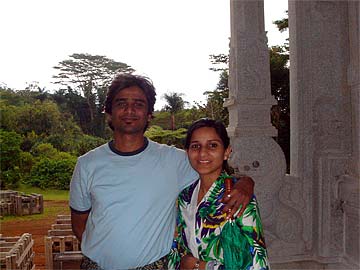 In the Eastern Gopuram near one of the Lion Pillars are Rishi and Ilima Sanghvi from San Francisco who made a spontaneous trip up this morning and joined our little group touring the Iraivan Temple.