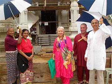In front of the beautiful sanctum steps of the Iraivan Temple. On the left are Kumar and Sarada Narendrans both physicians from Kanya Kumari, India, now living in Lubbock, Texas. Eleanor McCarthy a retired grade school teacher from Volcano, Hawaii. Kevin Hudson a registered nurse from Mountain View, Hawaii. Both Eleanor and Kevin plan to join the Innersearch pilgrimage to India, Cambodia and Malaysia with Sat Siva Guru Bodhinatha Veylanswami in January 2008.