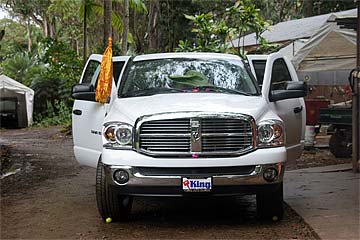 The new Dodge RAM 1500 is a similar model as the previous vehicle sporting some important new features. Most importantly bigger tires to navigate our rough terrain and a higher carriage to help with the trips to the land across the river and the deep pot holes on the way. And it is white!