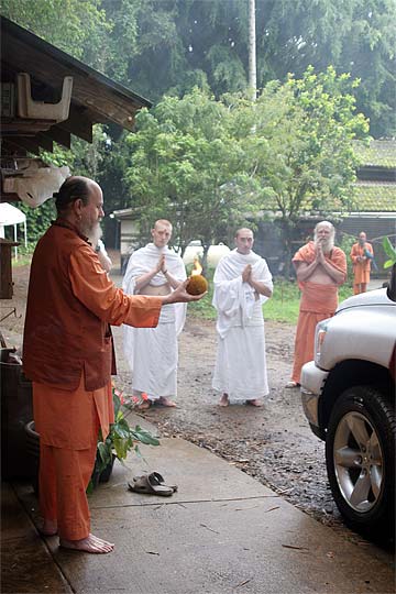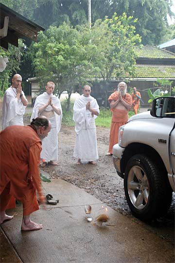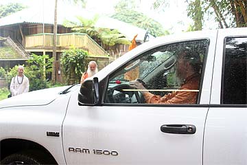 We are blessed to have a new truck to replace our very well-worn and aged Dodge. This afternoon at an auspicious moment in our week, we all joined for a traditional care blessing... Bodhinatha presiding.