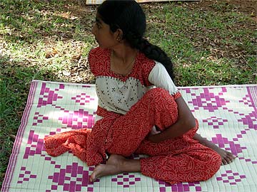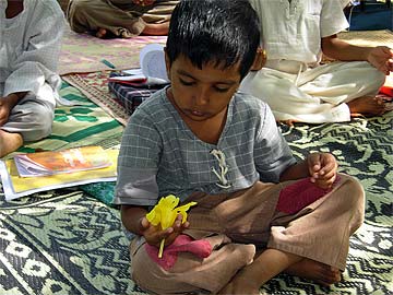 Today the lesson is on God, Gods and devas. Many of the youth did not know they had a guardian deva to protect them. Now we are having a concentration exercise on a flower as taught by Gurudeva. The youth are to have their mind focussed only on a flower....