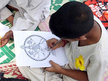 They also studied about the five powers of God Siva. Here they are trying to locate each of these powers on Siva Nataraja. Which power goes with which part of Siva?