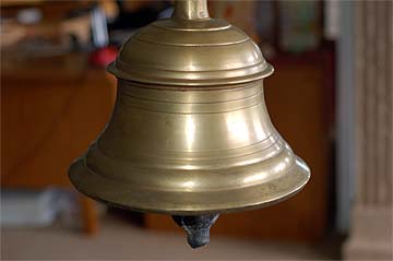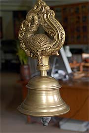 Well Palaniswami did just that and he was delivered this gigantic, incredible artifact, where the *diameter* of the bell is nine inches. With an incredibly intricate top and change and the whole things weighs in about 50 pounds!