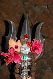 The trident symbol of Lord Siva as Bhairava, on the left side of the doors inside Kadavul.