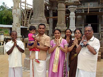 A very happy Tamil family from Phoenix, Arizona pose with Chelliah, one of our super Silpis, at the Iraivan Temple site.