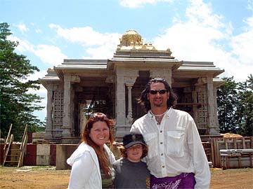 Mary Sequoia Hamilton, her 10 yr old son Sky, and Ben Powell were taken on a tour of the Iraivan Temple today. Mary and Ben are from Ojai, California and are the publishers and editors of a magazine called "Awaken" which promotes global environmental issues, higher consciousness, health and travel. They also own a travel agency and are currently promoting a "spiritual cruise" to Kauai next year.