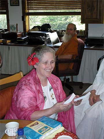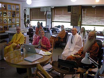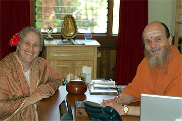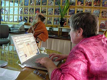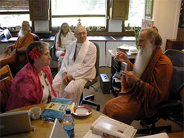 An expert trainer and teacher of Adobe Creative Suite applications, Sandee Cohen, meets with Bodhinatha after having given a group of monks 3 hours of training each morning for two days.