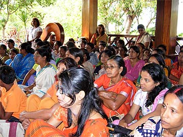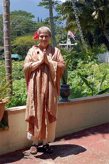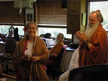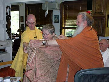 Paramacharya Palaniswami gives her some gifts and honors her with a shawl at the end of today's session before she left for New York.