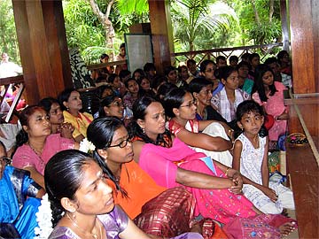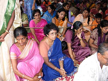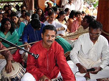 Meanwhile devotees outside enjoy the songs being aired on loudspeakers...