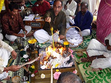 The Homa is going on and as usual hundreds of prayers are being burnt.