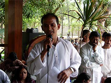The ceremony is over. Kumaren is taking care of the PA system equipment.