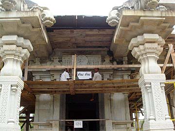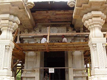 Manikandan and Chelliah show on paper what they are about to draw and then carve above the Sanctum doorway "Siva Siva" in Tamil.
