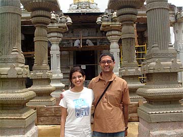 Newly weds Manish and Gita Shah, who plan to make their new home in Brooklyn N.Y., both feel that it was an "unexpected special blessing" to have attended the puja this morning and to see the building of this most sacred Iraivan Temple in progress.