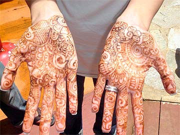 Gita Shah was only too happy to show the beautiful Mendhi patterns on her hands from her wedding ceremony just two days ago. "They only last about two weeks" Gita said. She also had them on her feet.