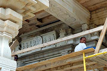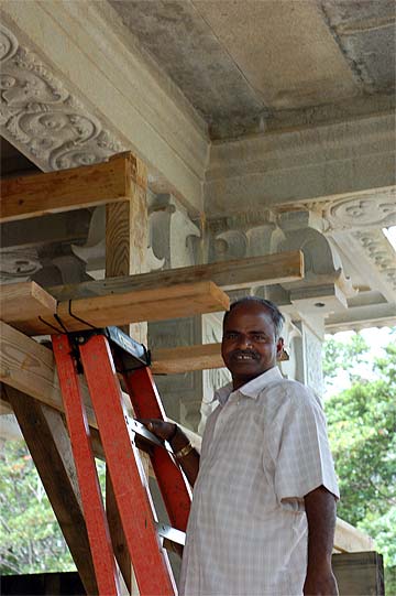 Today was a tour day at the Aadheenam. We took pictures with our close up camera.. Here is Karupaiah at work up near the ceiling.