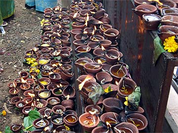 Back to our Homa event.... Devotees bring lighted clay lamps when coming to worship Lord Pancha Ganapati.