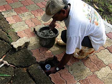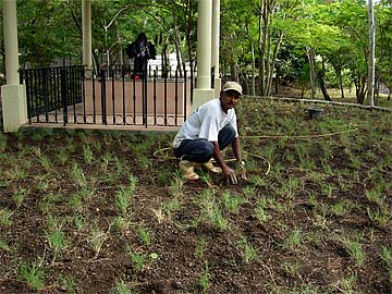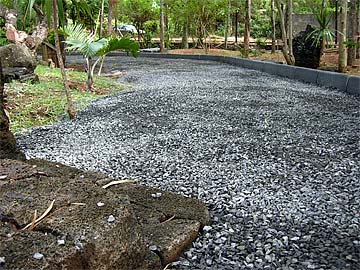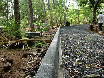 The mud path from the main entrance to the Ganesha Bridge is being covered with gravel....