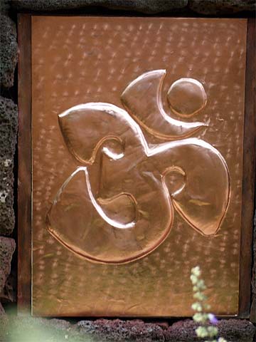 One of their tasks recently was preparing and installing this new copper Aum in the base of the Nepalese Ganesha shrine today.