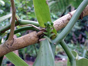 The vanilla bean is vine flowering for the first time.
