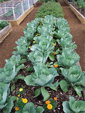 Cabbages with Marigold flowers.
