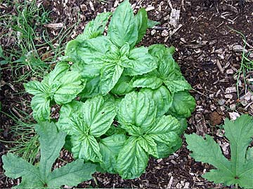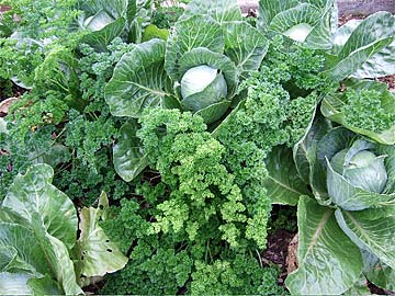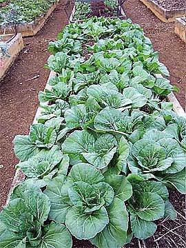 The tall shrub in the background is a perennial edible green called Pakwan