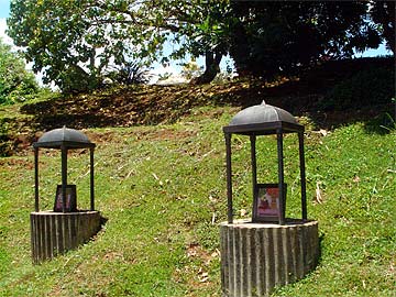 Left: the shrine honoring Siva Yogaswami (1872-1964), great rishi of Jaffna, Northern Sri Lanka. Right: the shrine honoring our own beloved satguru, great world teacher and shining light to the world, Sivaya Subramuniyaswami, Gurudeva (1927-2001).