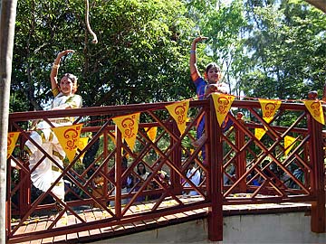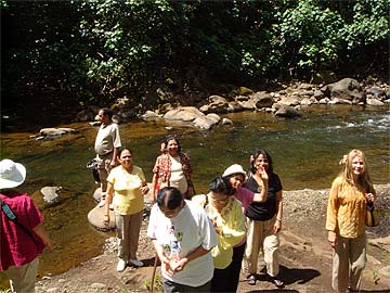 A wonderful group of visitors from a previous day returned for the 9 a.m. puja and a tour of the waterfalls and lotus ponds.