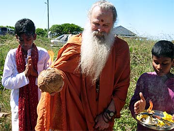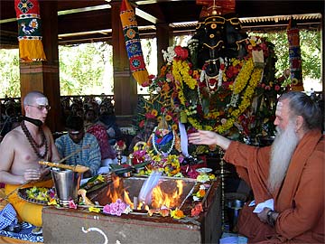 We bring you a few more photos of the Ganesha Homa at the Spiritual Park. The only pool now on the right side of the Ganesha Mandapam looks beautiful again.