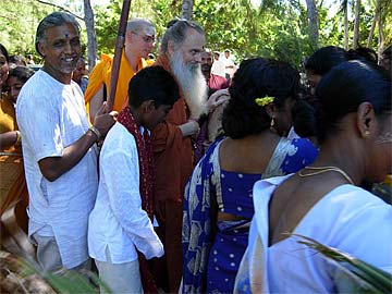 Paramacharya Palaniswami and Yogi finding their way through the crowd. Everyone wants to touch swami's feet. Kulapati Manon is leading the way.