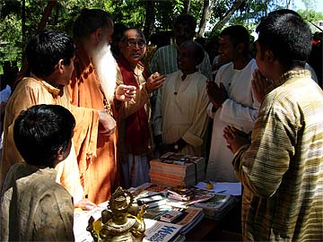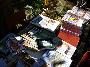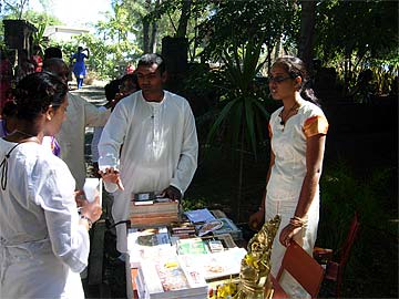 A small book stand has been set up down the main entrance to sell the Church publications. On Homa days the space at the Mini Mela cannot cater for the large crowd coming in. The Himalayan Committee has always been supporting the Mini Mela on festivals selling outside in a stall on the property. Today a few Master Course students are happy doing this seva ...