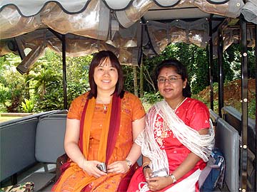 Lakshmi Sivasurier and her friend Lena Wong are visiting from Toronto, Canada and were present for the morning abhishekam in the Kadavul Siva Temple, followed by a tour of the Iraivan Temple and a wonderful meeting with Satguru Bodhinatha Veylanswami.