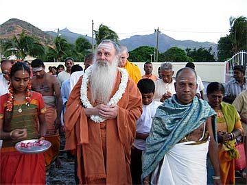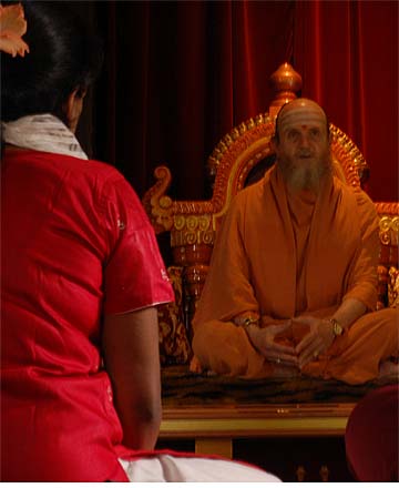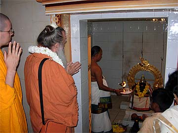 It is 5:00 PM and many of our Himalayan Academy students and members are already there early waiting for Paramacharya Palaniswami....
