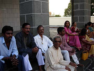 After the procession round the temple, Paramacharya Palaniswami gave a talk about how the Tamil community are great temple builders all over the world today. Swami also talked about personal karma and how Hindus are being blindly lured and abused by those promoting Vastu for vested interest today. The book "What is Hinduism" published by Himalayan Academy was introduced and everyone was invited to have a copy once it was released at the local customs. A nice group listened attentively, mostly from our membership and the temple's regular devotees...