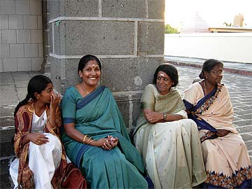 .... A few of our ladies seated on the Temple steps ......