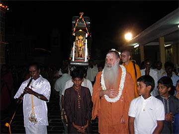 A murti of Lord Muruga is led around the temple...