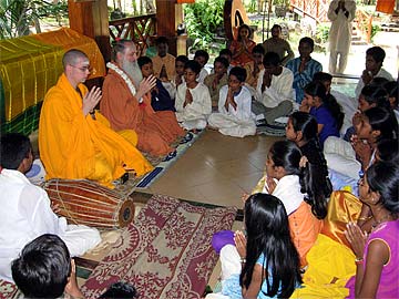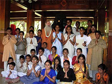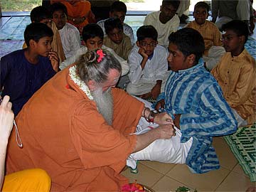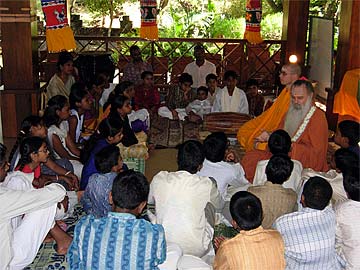 Paramacharya Palaniswami and Yogi taught about how to sit with the spine erect and about feeling being an ordinary being compared to being a special being..... Paramacharya also talked about affirmation and how everyone was to develop positive affirmations... Other practical explanations were given to help the youth develop further their spiritual life. Then swami talked about the brahmacharya vrata that four boys were going to take on that day...